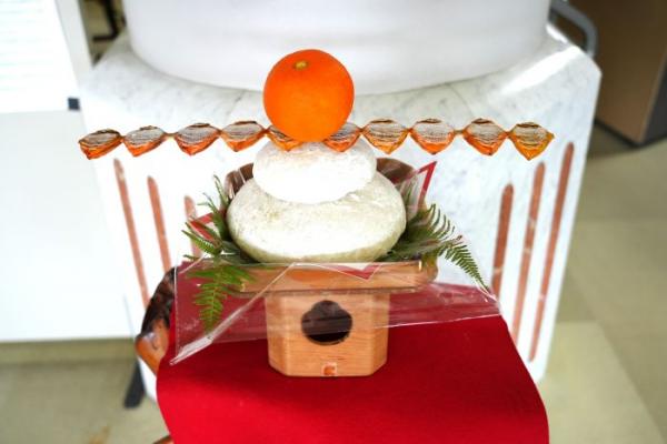出来たお餅は鏡餅としてエントランスに飾られました。