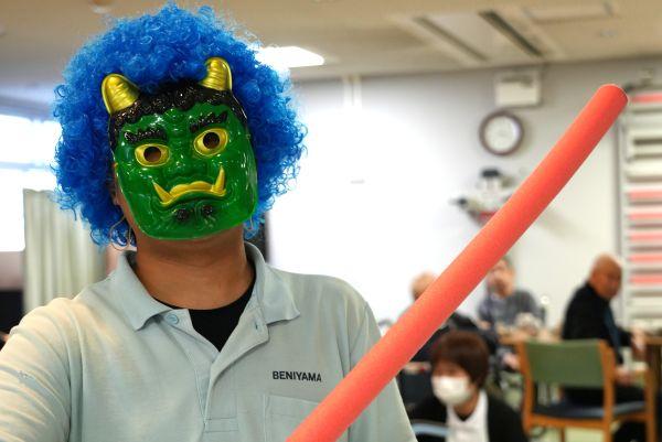「鬼は~外!鬼は~外~!!」利用者さんの猛攻撃に最後はやっぱり鬼が負けて紅山荘の平和は守られたのでした。