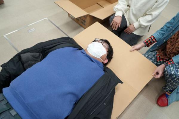 ご飯の後は毎年恒例の「新聞紙ボールで鬼退治大会」をしました。