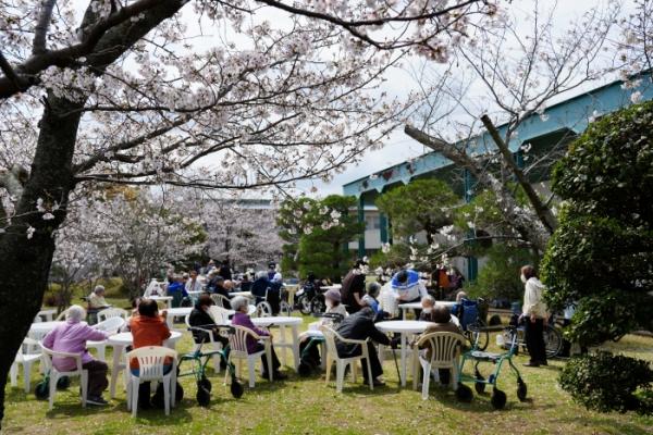 4月2日(木)、紅山荘園庭でお花見をしました。